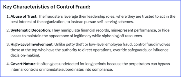 A really good way to begin to understand and dig through the systemic mess we’re in is to familiarize yourself with William K Black’s concept of “Control Fraud.”